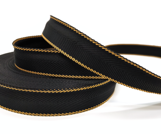 Лента для окантовки 30 мм, плотность 12 гр., цвет черный/елочка V2 золотистая